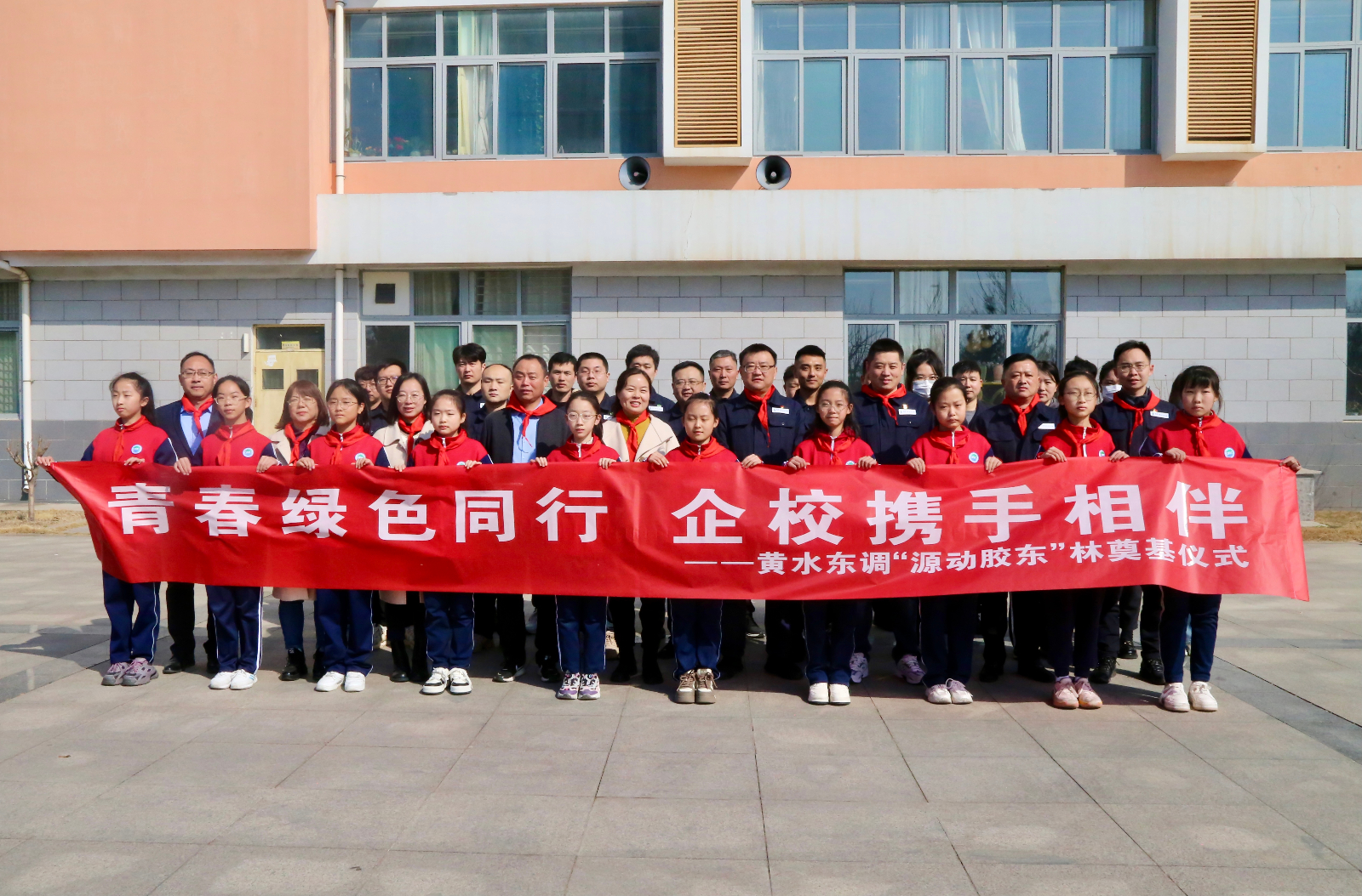 在全國第46個(gè)植樹節(jié)到來之際,為深入學(xué)習(xí)貫徹習(xí)近平新時(shí)代中國特色社會主義思想,進(jìn)一步貫徹“綠水青山就是金山銀山”綠色發(fā)展理念。3月12日,黃水東調(diào)黨支部、青年文明號聯(lián)合濰坊藍(lán)海學(xué)校開展“青春綠色同行,企校攜手相伴”黃水東調(diào)“源動膠東”林奠基儀式。黃水東調(diào)公司黨支部書記、董事長申勇,濰坊藍(lán)海學(xué)校校長楊偉平,公司黨員和青年代表及學(xué)校師生代表共計(jì)50余人參加了活動。