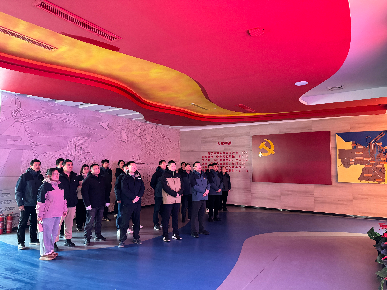 隨后,全體人員赴濰坊市濱海黨性教育基地“奮進濱海展館”參觀學(xué)習(xí),該展館以紅色歷史為起始,以時間年輪為軸線,以濱海歷史發(fā)展的16個重大事件為關(guān)鍵節(jié)點,講述濱海歷史故事中傳承紅色基因,尋跡濱海滄桑巨變中弘揚精神信仰,全面展示了濱海區(qū)共產(chǎn)黨員的初心使命。通過參觀教育基地,使全體黨員的靈魂受到了深刻洗禮,思想經(jīng)歷了新的升華,黨性得到了有力錘煉。